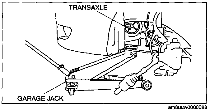 ^ Improperly jacking a transaxle is dangerous. It can slip off the jack and may cause serious injury.