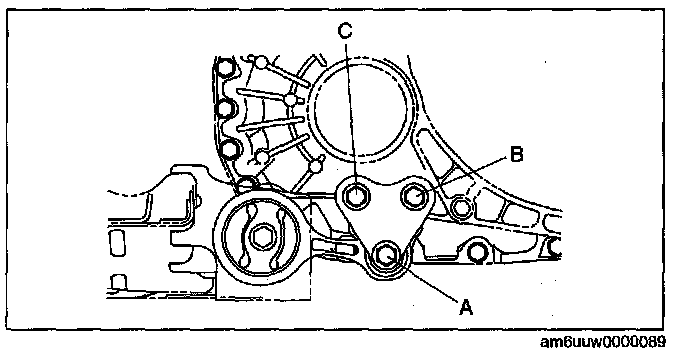 2. Temporarily tighten bolt A, then tighten bolts B, C.