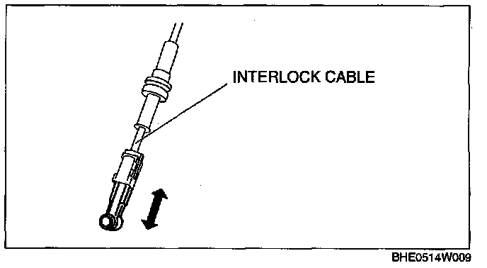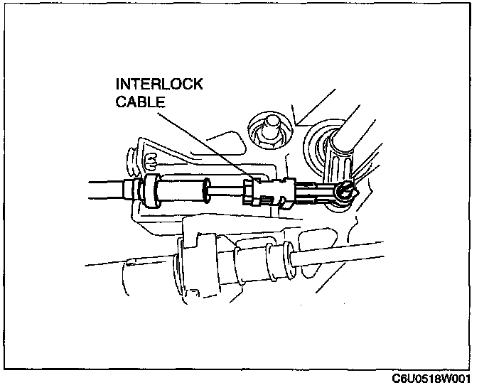 4. Verify that the interlock cable moves freely with the brake pedal depressed.