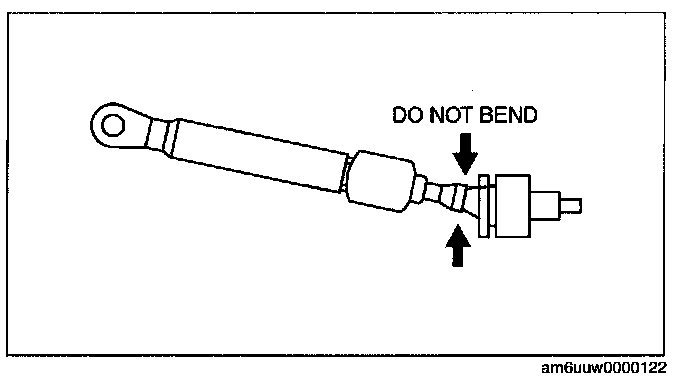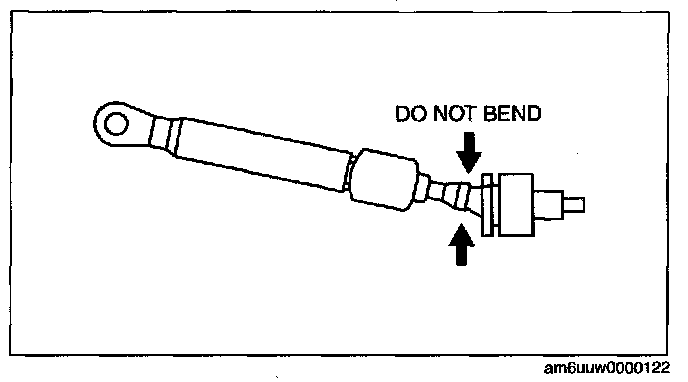 ^ Bending the selector cable in the manner shown in the figure will damage the cable and it may become loose when shifted. When installing the selector cable, hold it straight.