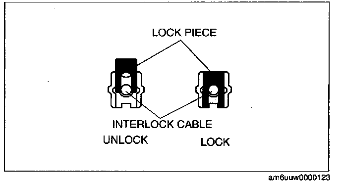 ^ Applying a load to the interlock cable while pressing the lock piece in can affect the lock unit operation.