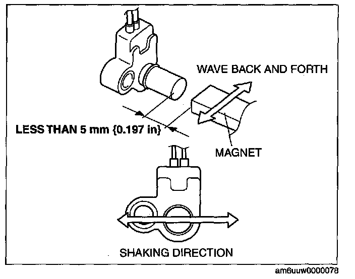 12. Measure the current while waving a magnet back and forth over the top of the input/turbine speed sensor (less than 5 mm (0.197 in)).
