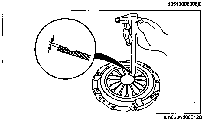 CLUTCH COVER INSPECTION [G35M-R, A65M-R]1. Measure the wear of the diaphragm spring fingers.