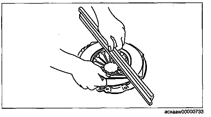 2. Measure the flatness of the pressure plate with a straight edge and a feeler gauge.