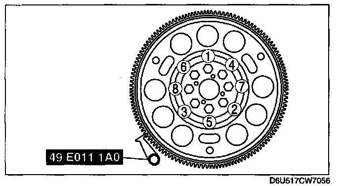 4. Tighten the new drive plate mounting bolts in two or three steps in the order shown.