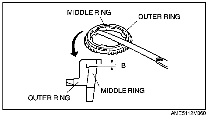 1. Inspect clearance of the synchronizer component outer, middle, and inner synchronizer rings.