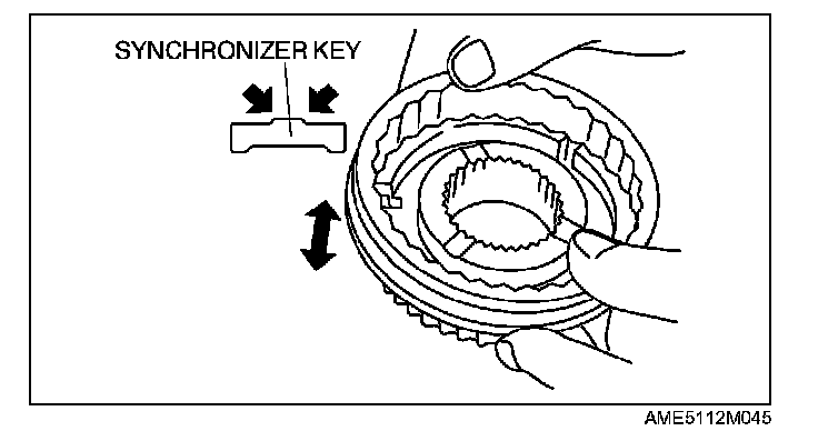1. Inspect the clutch hub sleeve, clutch hub, and synchronizer key contact surface for damage and abnormal wear.