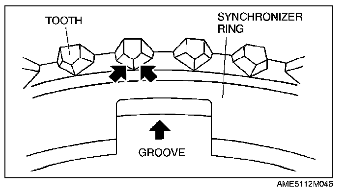 3. Inspect the synchronizer ring teeth and grooves for damage, abnormal wear, and cracks.