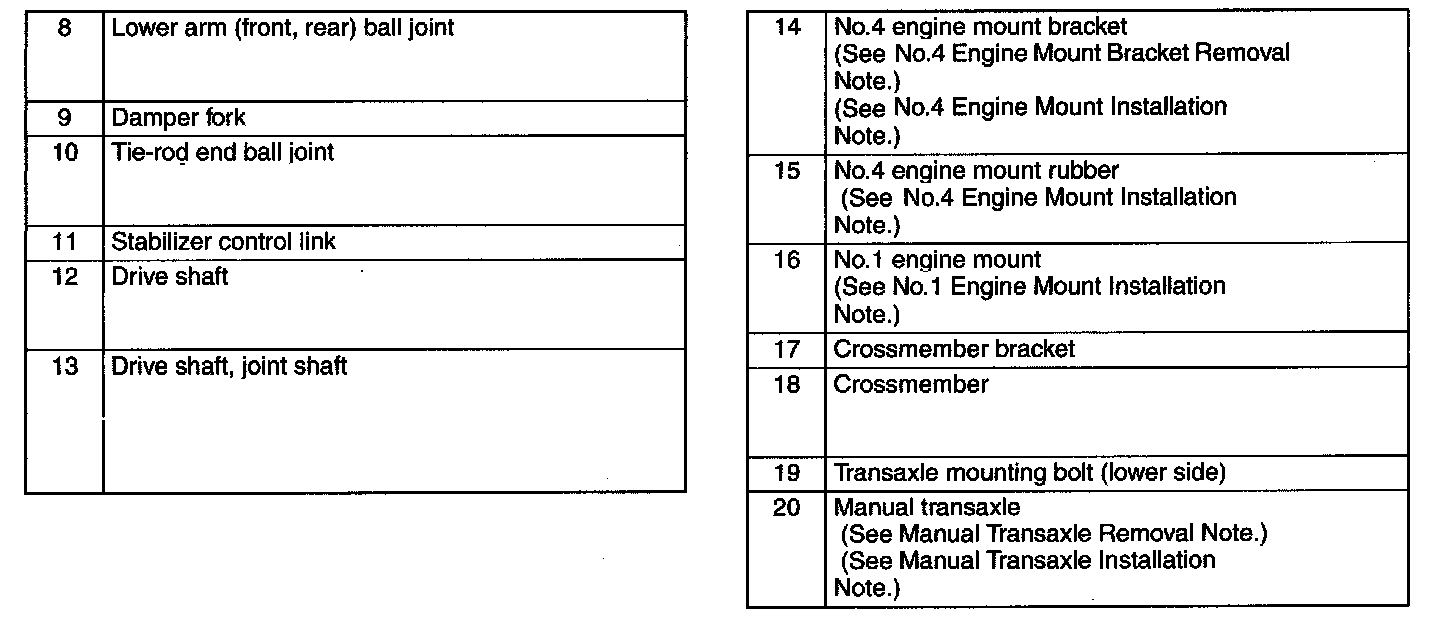 Manual Transaxle Removal Note