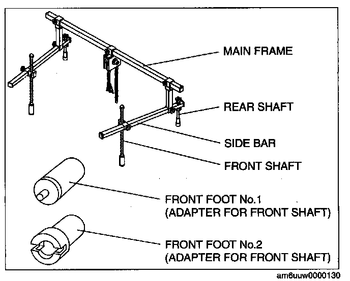 3) Install the left/right front shaft of the SST with front foot No.2 to the bolt as shown in the figure.