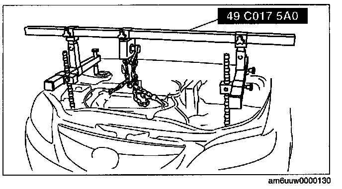 4. Adjust the SST (49 C017 5A0) so that the engine is located at the specified position.