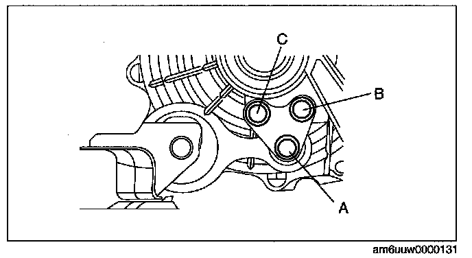 2. Lightly tighten bolt A, then tighten bolts B and C.