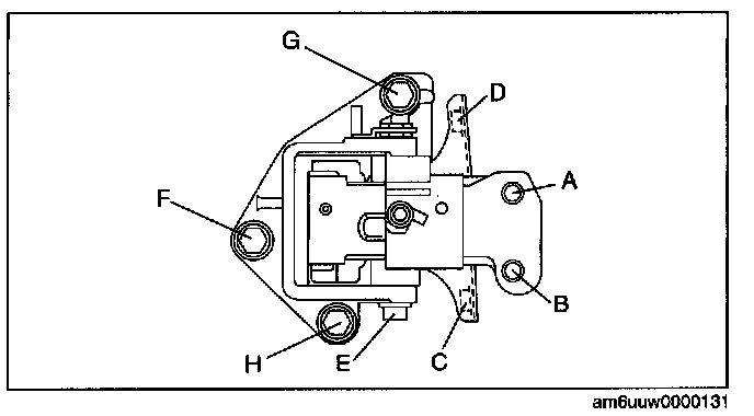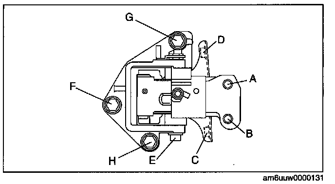 11. Tighten nuts F, G in order of F-->G, then bolt H.