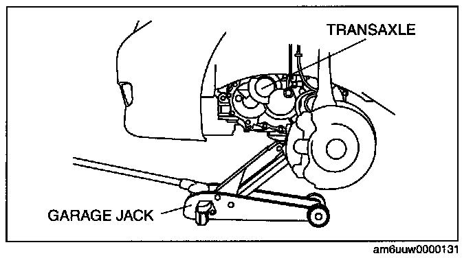 ^ Improperly jacking a transaxle is dangerous. It can slip off the jack and may cause serious injury.