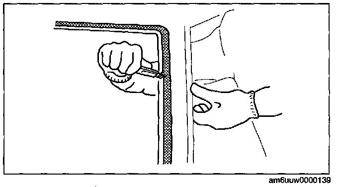 1. Cut away the old sealant using a razor so that 1- 2 mm (0.04-0.01 in} thickness of sealant remains along the perimeter of the frame.