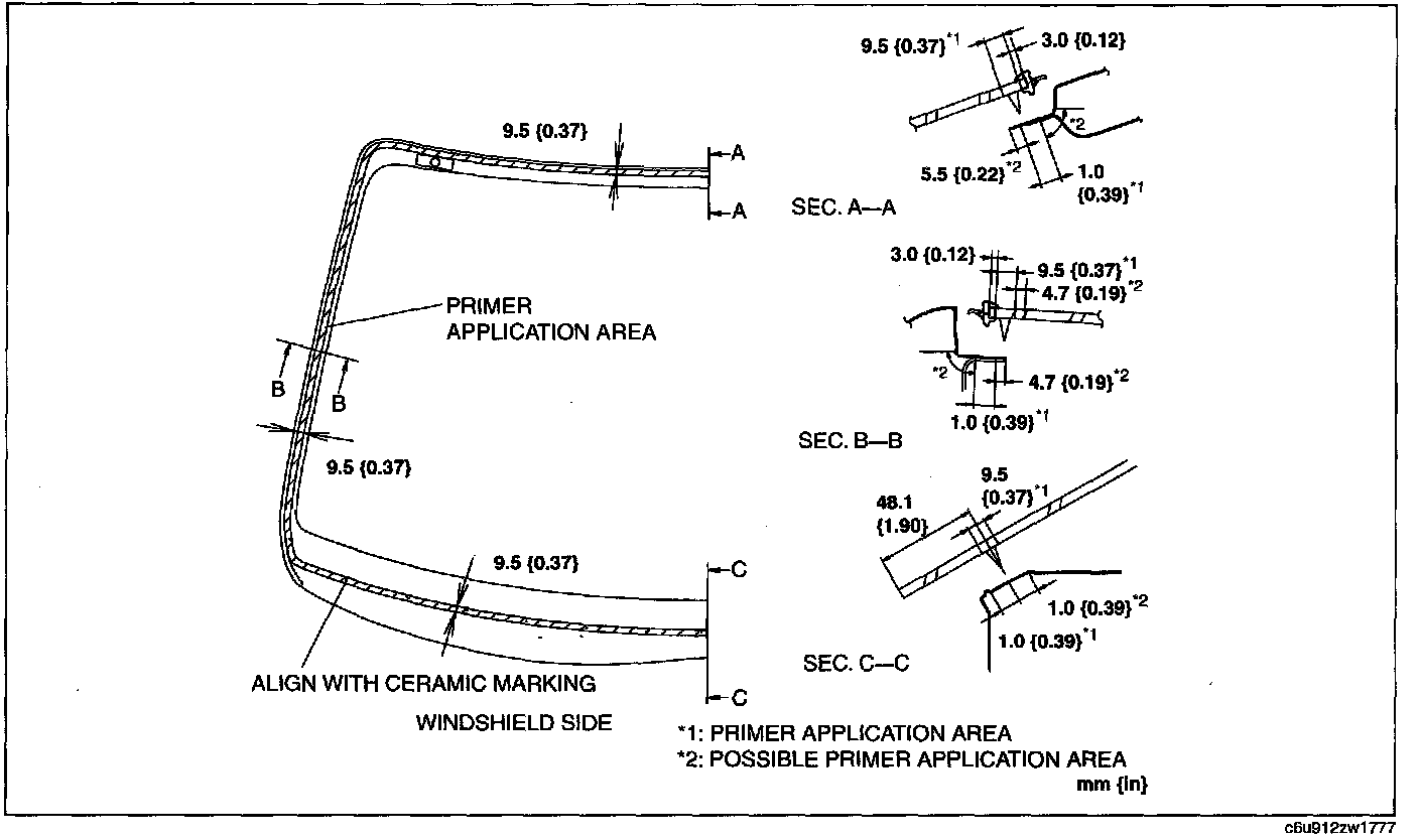 - Keep the area free of dirt and grease, and do not touch the surface. Otherwise, the primer may not properly bond to the surface of the glass and body, which may cause leaks to occur.