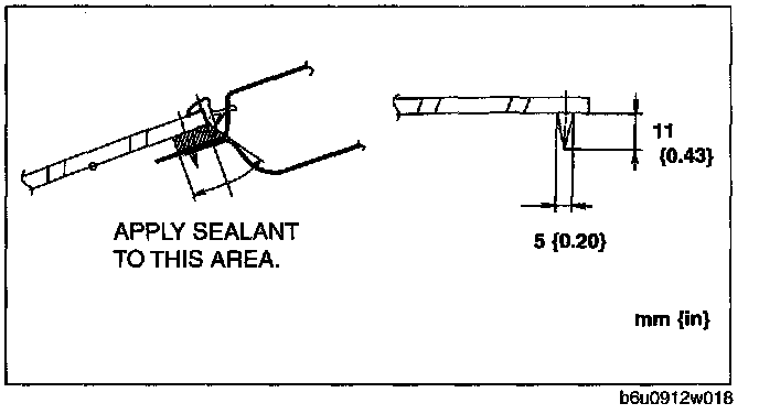 2. If the sealant has come off completely in any one place, apply some primer after degreasing, and allow it approx 30 mm to dry. Then put on new sealant to create a 2 mm (0.08 in} layer.