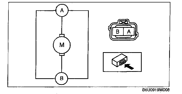 3. Connect battery positive voltage to the motor terminal A and ground to the motor terminal B.