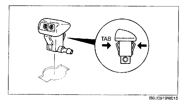 2. Remove the windshield washer hose from the windshield washer nozzle.