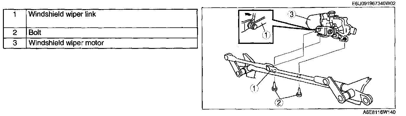 1. Pry off the connection between the windshield wiper motor and windshield wiper link.