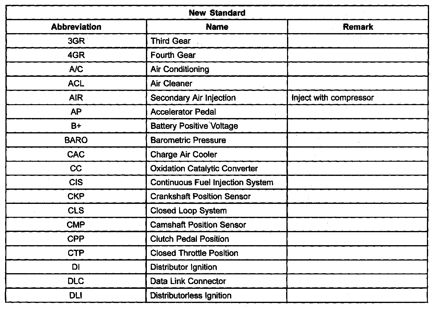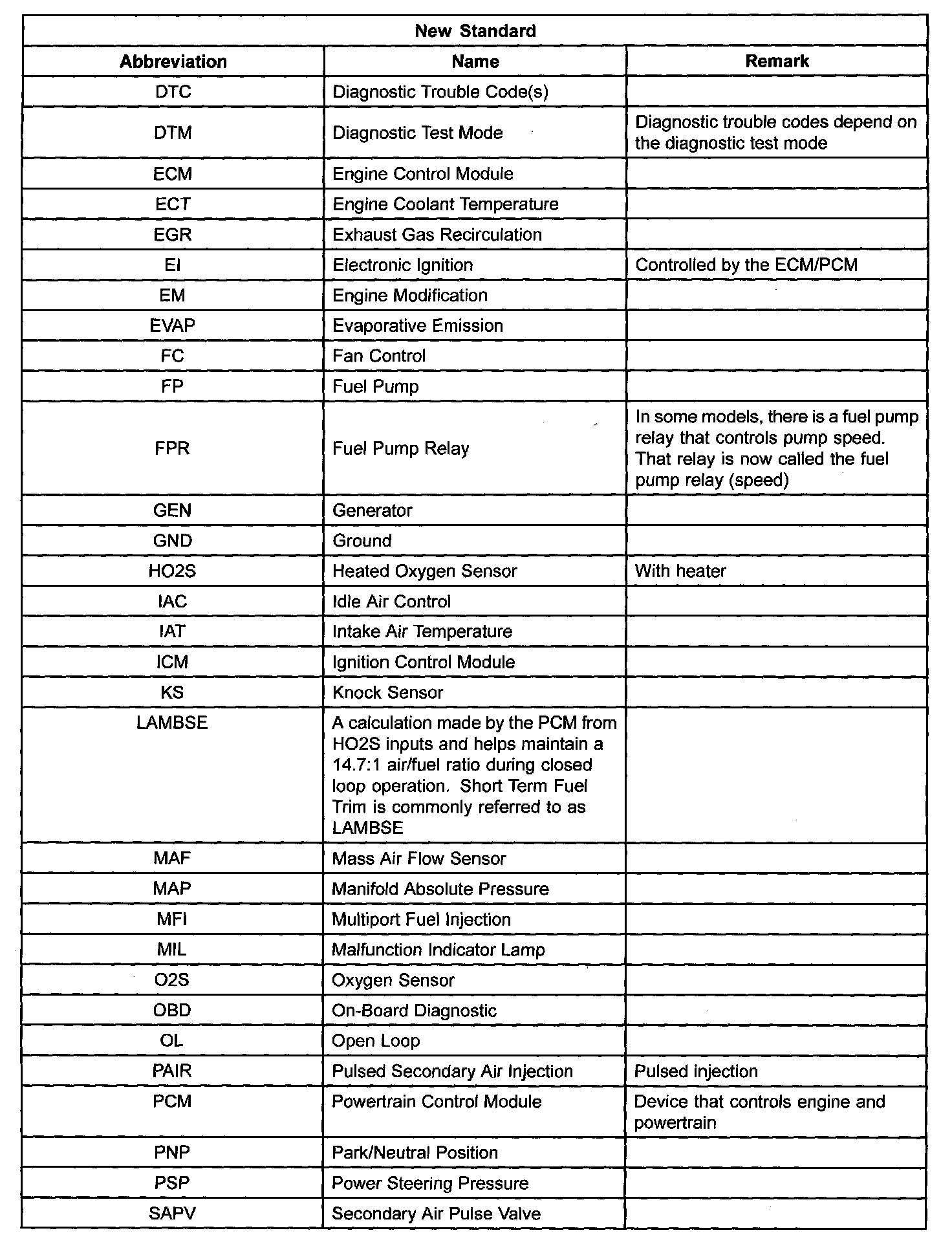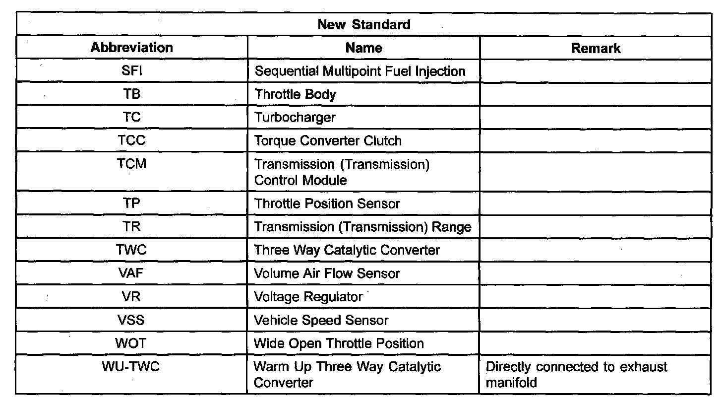 SAE STANDARDS- In accordance with new regulations, Society of Automotive Engineers (SAE) standard names and abbreviations are now used in this manual. The table below lists the SAE abbreviations and the corresponding names used in Mazda manuals.