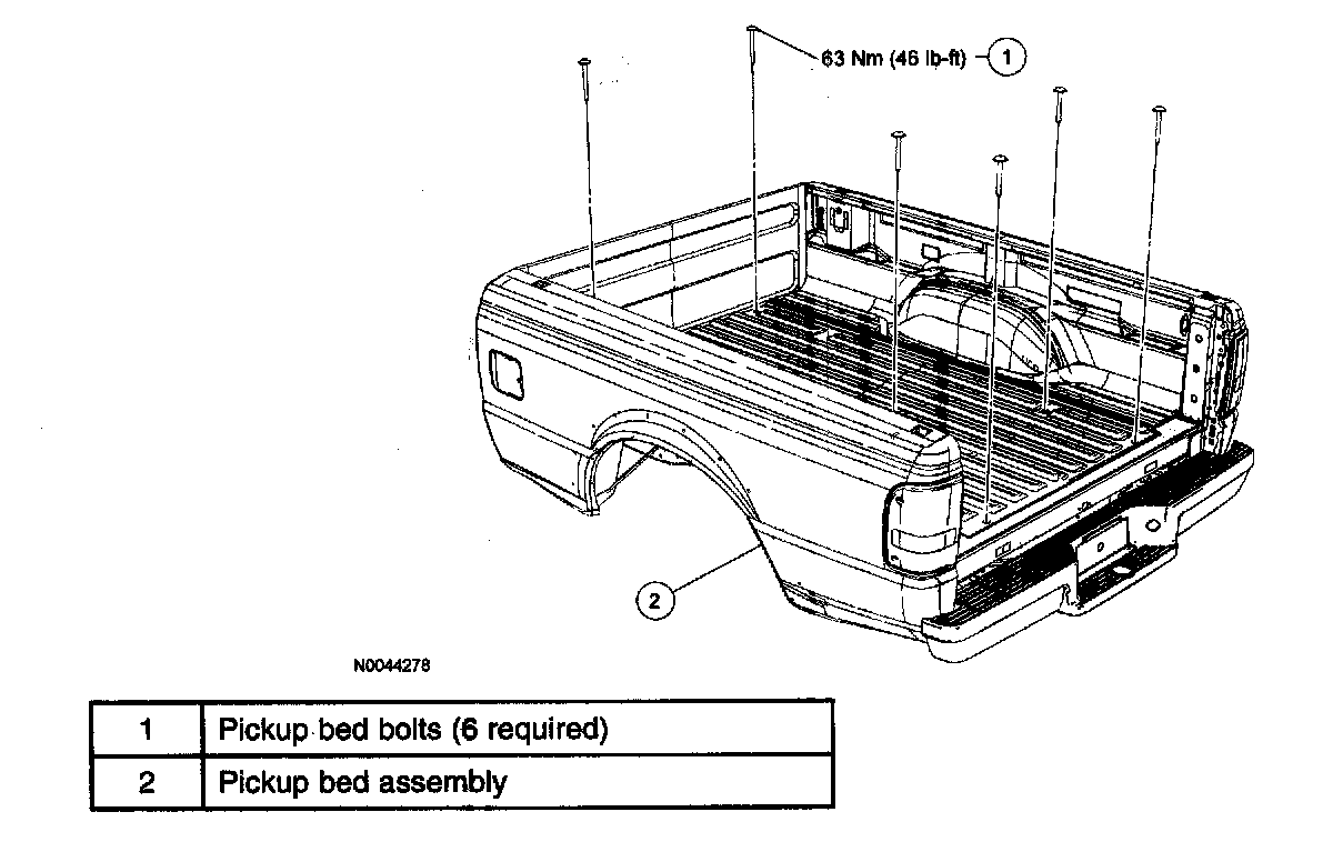 NOTE: The pickup bed bolts are not identical and must be installed in the same location that they are removed from.