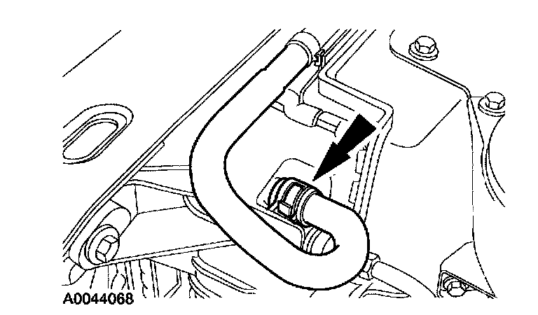 3. Disconnect the coolant overflow hose from the radiator, position the hose away from the radiator.