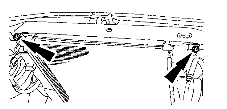 7. Remove the bolts, tilt the radiator back and lift it directly upward.