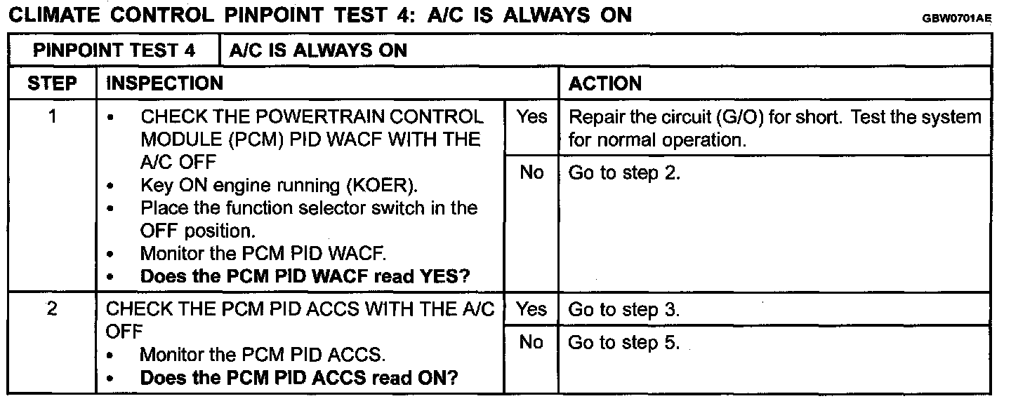 Pinpoint Test 4: A/C Is Always on