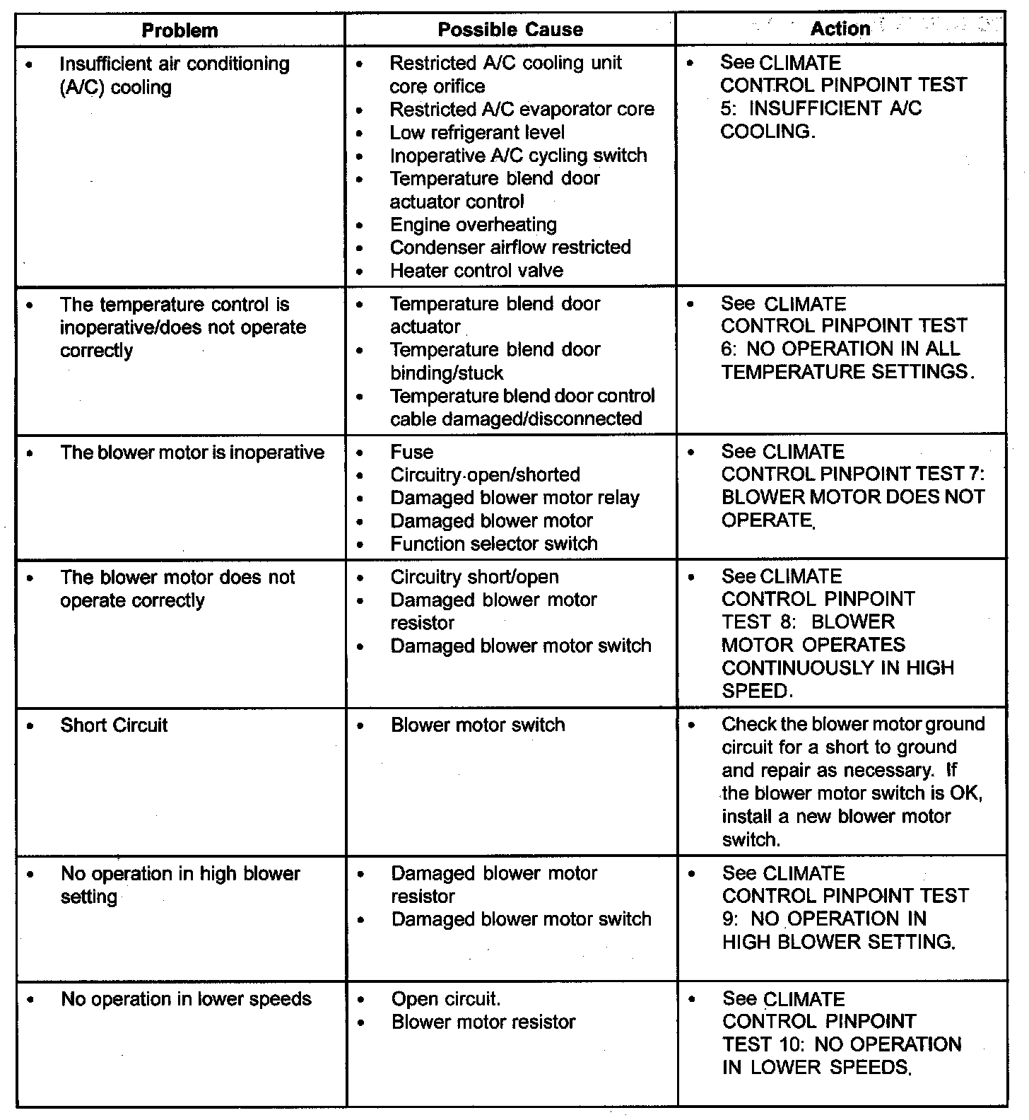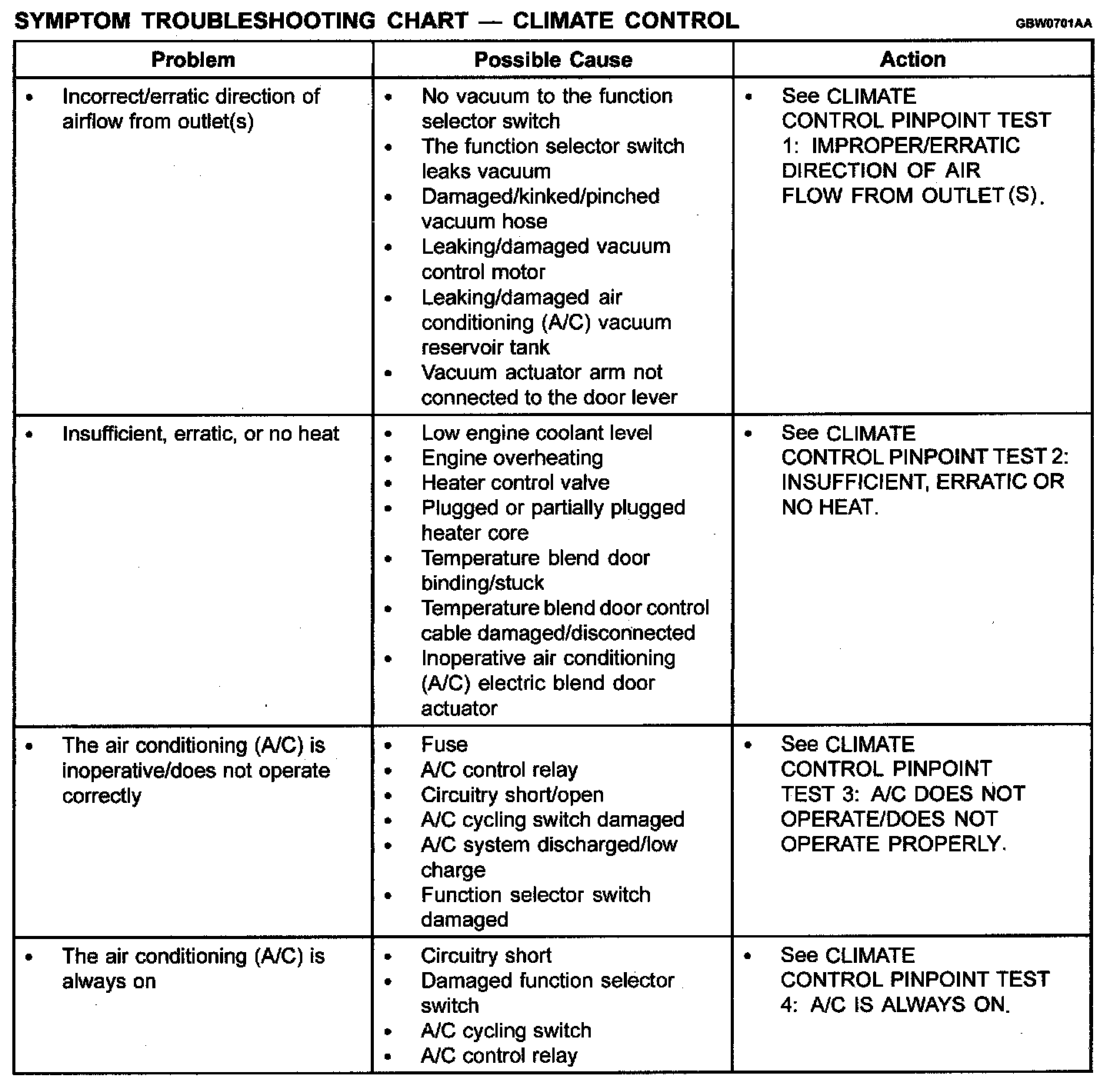 Symptom Troubleshooting Chart-Climate Control (Part 1):