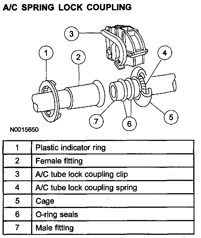 - An A/C tube lock coupling clip may be used to secure the coupling but is not required.