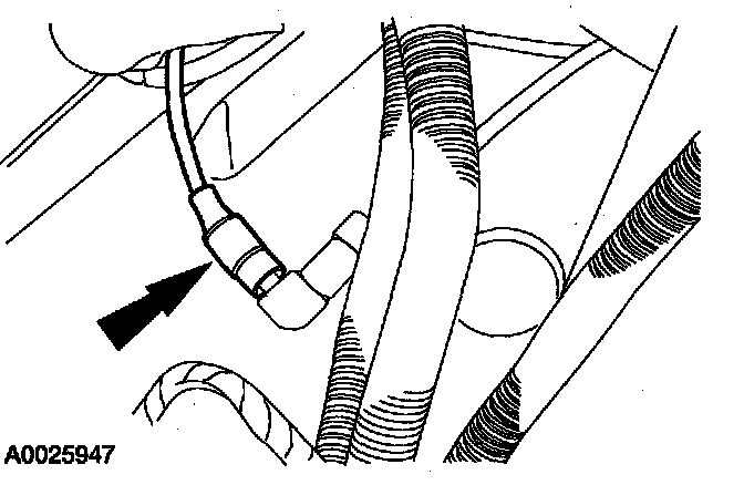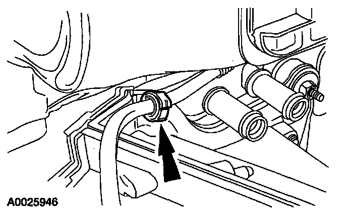 - On the RH splash shield, disconnect the vacuum lines from the vacuum storage reservoir.