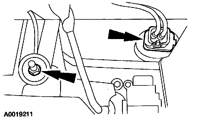 NOTE: The following step is performed at the lower passenger side dash panel, inside the passenger compartment.