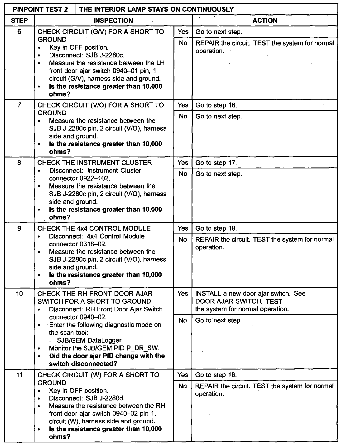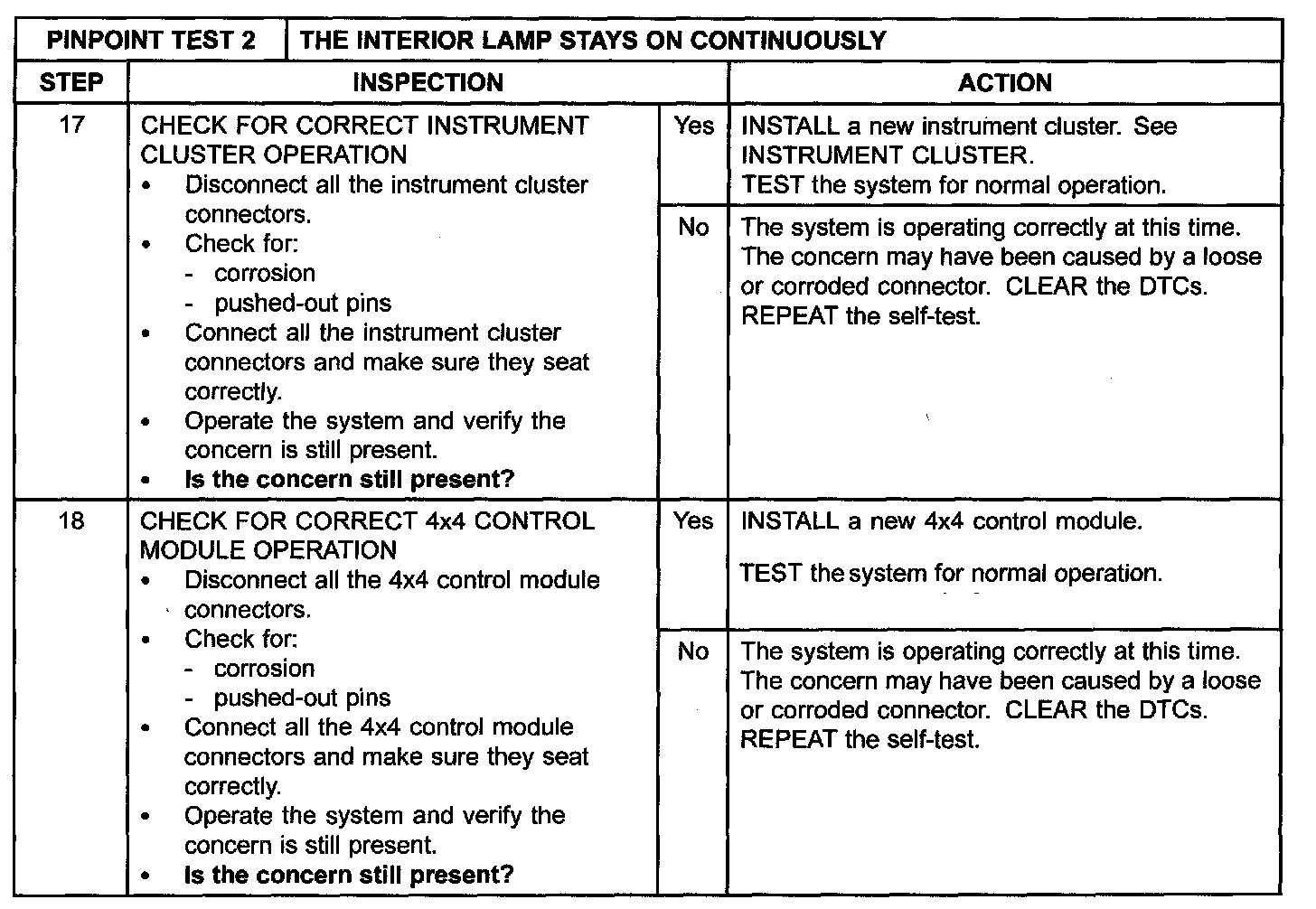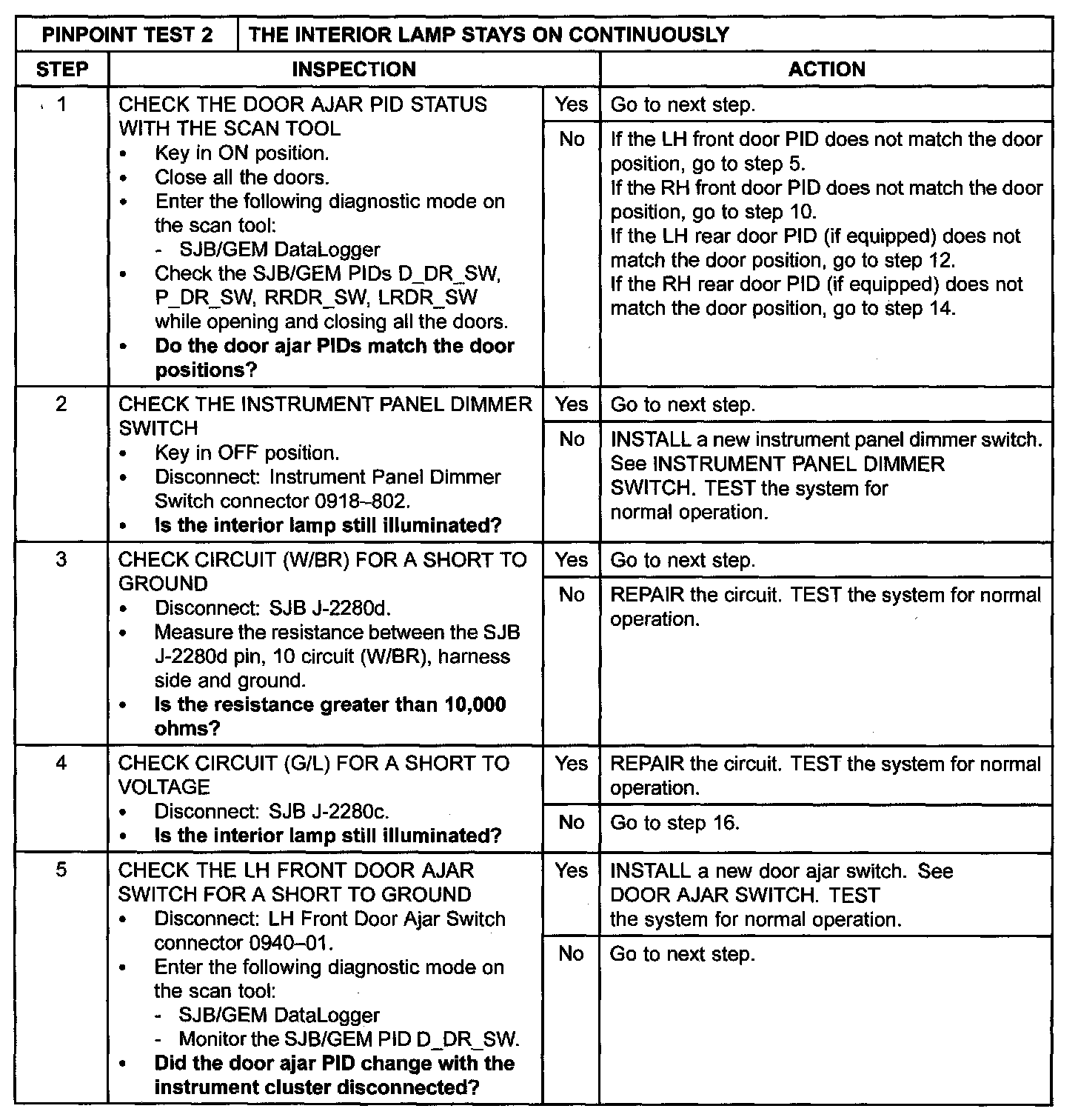 PINPOINT TEST 2: THE INTERIOR LAMP STAYS ON CONTINUOUSLYNormal Operation