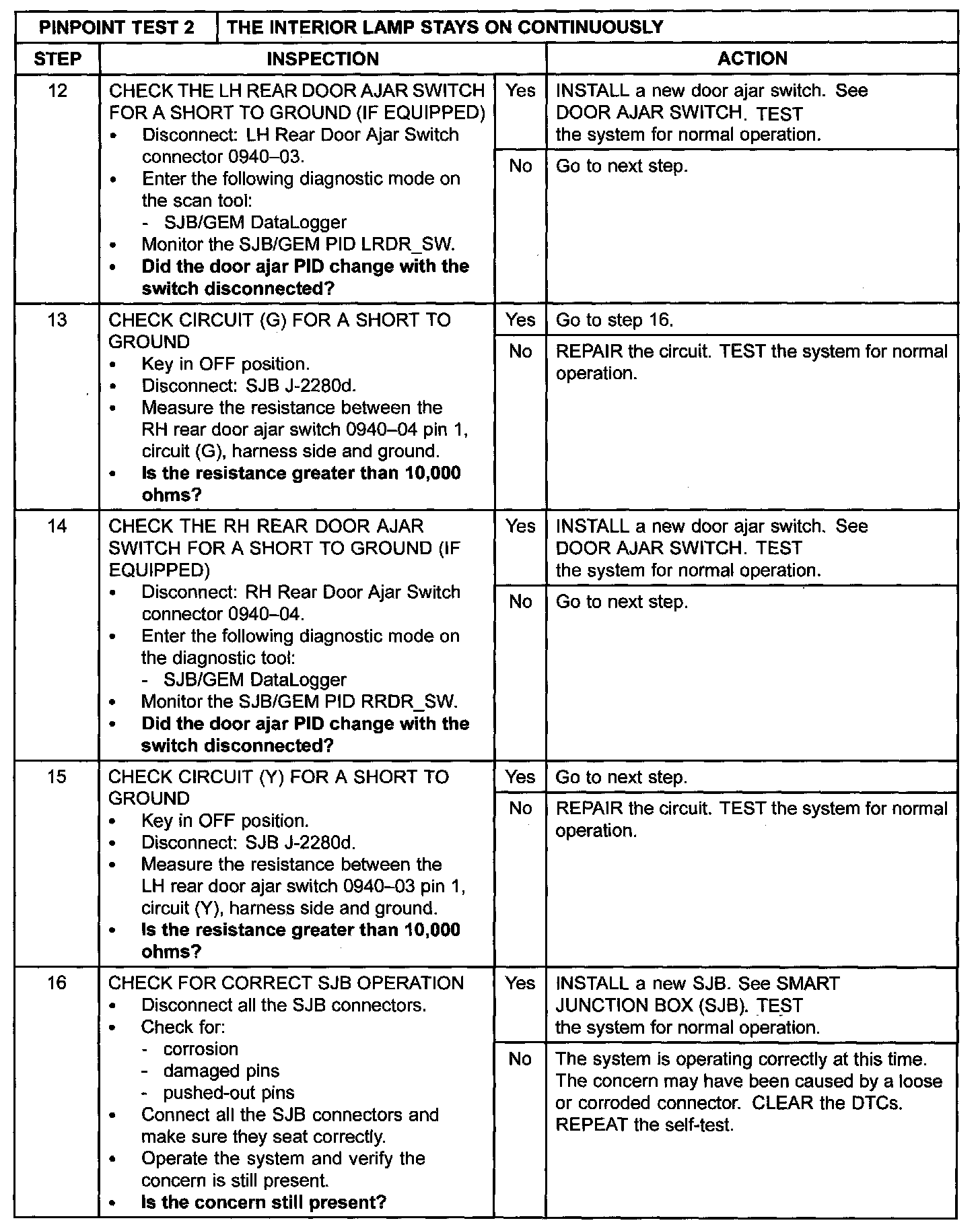- DTC B1574 (Door Ajar LR Circuit Short to Ground) - is an on-demand DTC that sets when the SJB/GEM detects a short to ground from the LH rear door ajar circuit.