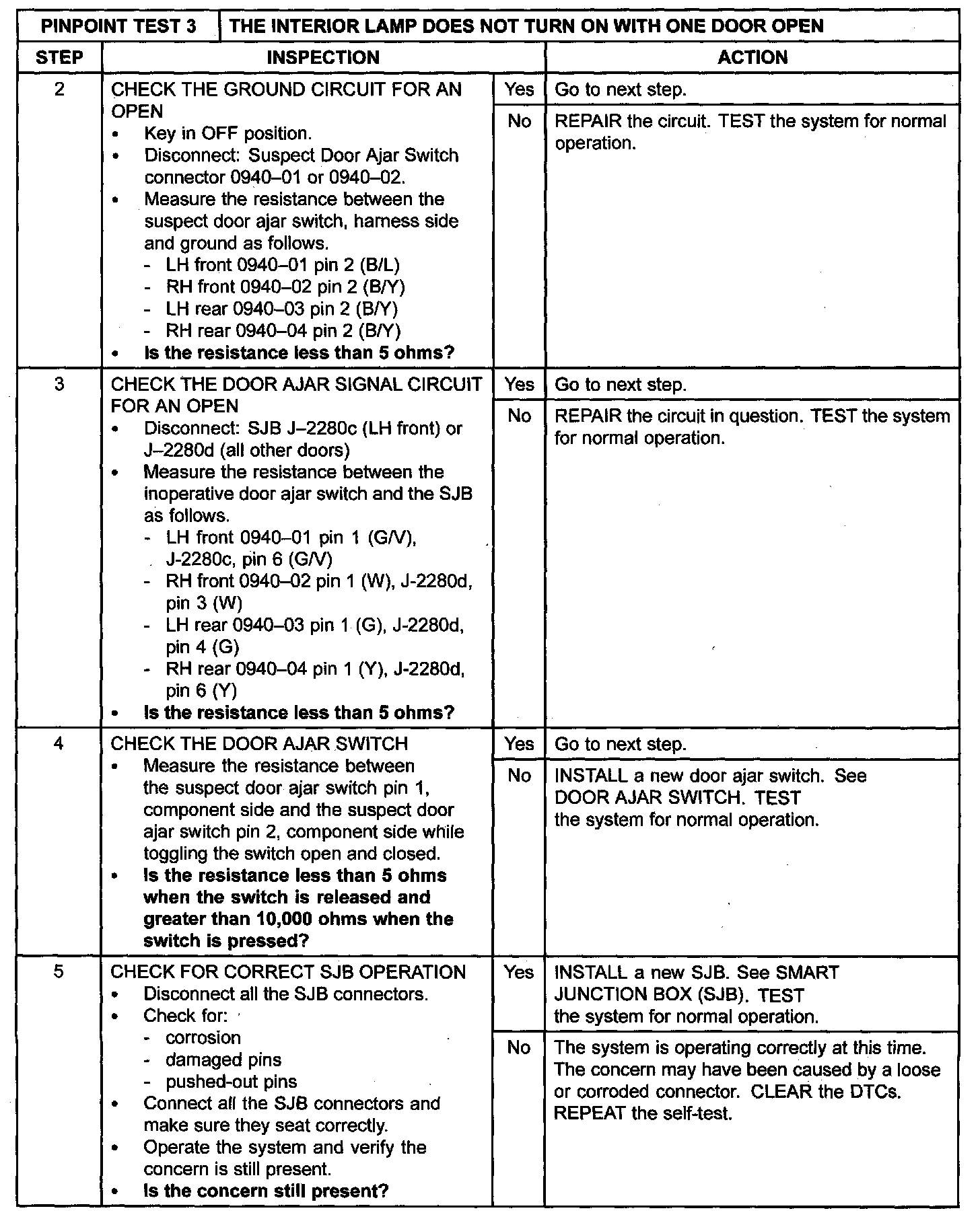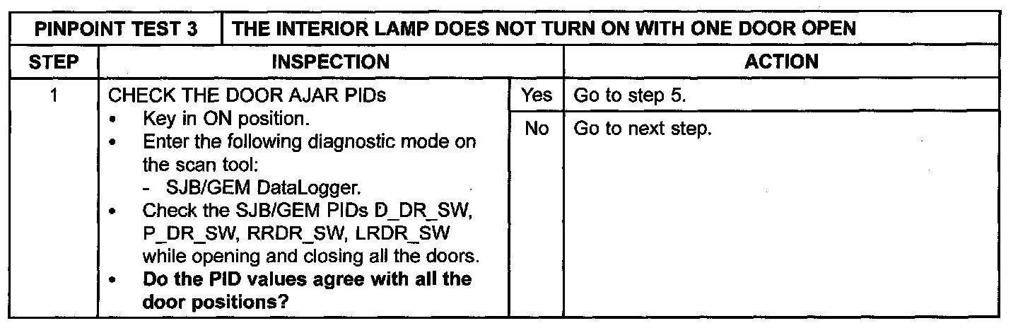 PINPOINT TEST 3: THE INTERIOR LAMPS DO NOT TURN ON WITH ONE DOOR OPENNormal Operation
