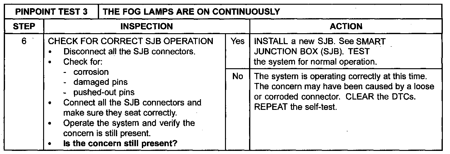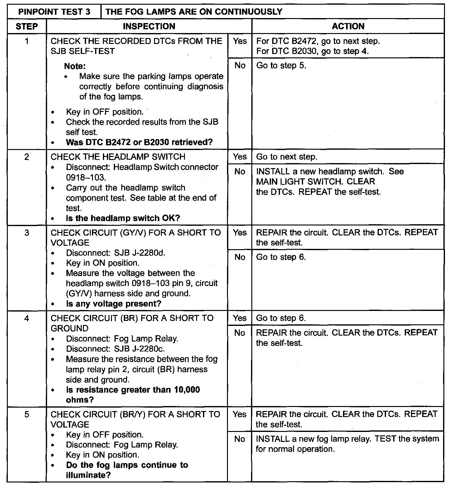 PINPOINT TEST 3: THE FOG LAMPS ARE ON CONTINUOUSLYNormal Operation