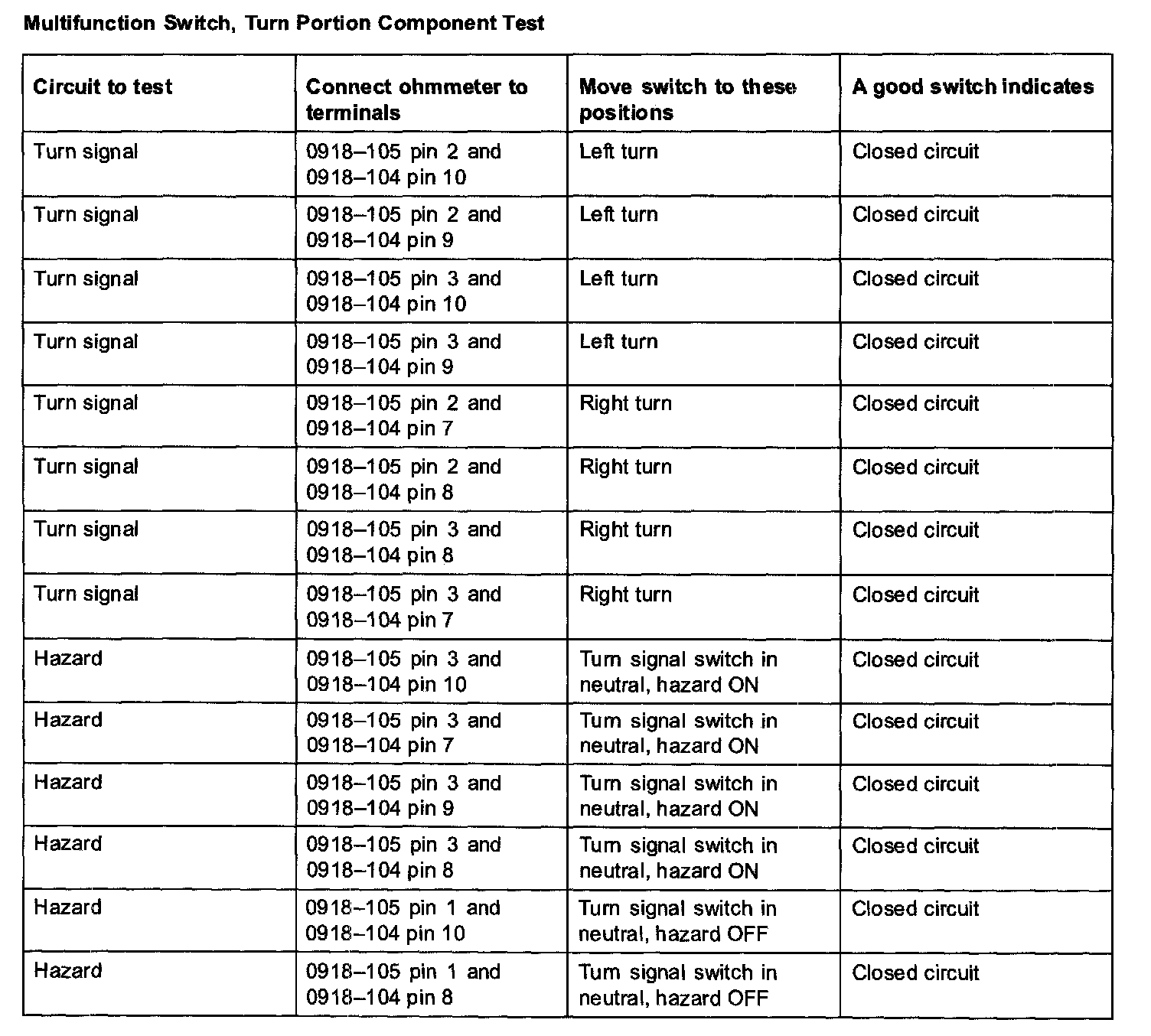 Multifunction Switch, Turn Portion Component Test: