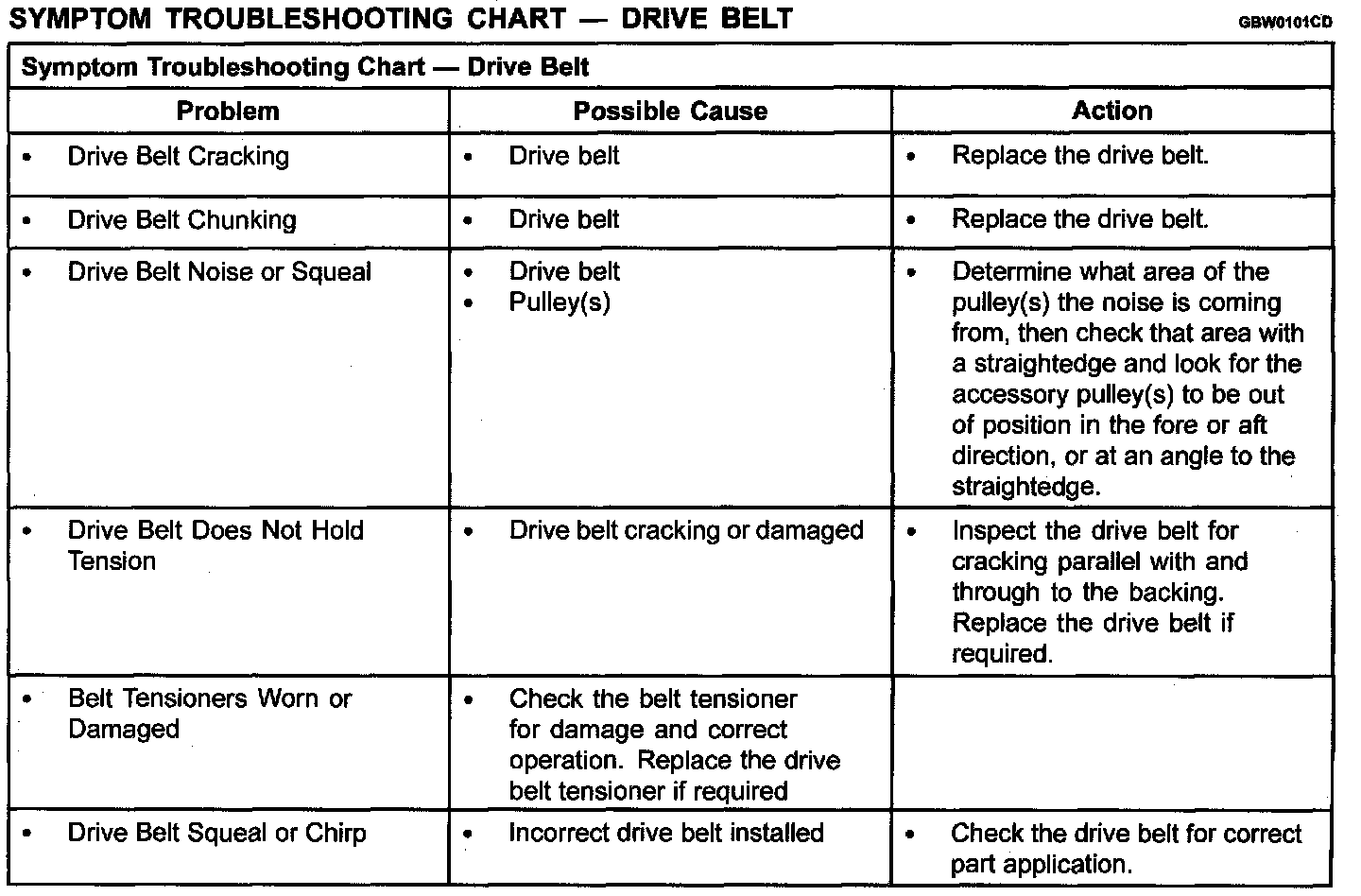 Symptom Troubleshooting Chart - Drive Belt (Part 1):