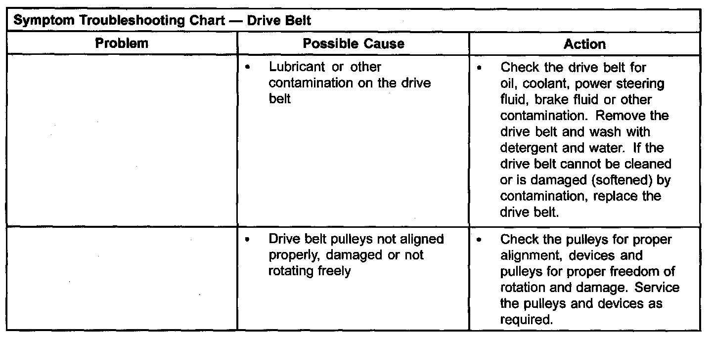 Symptom Troubleshooting Chart - Drive Belt (Part 2):