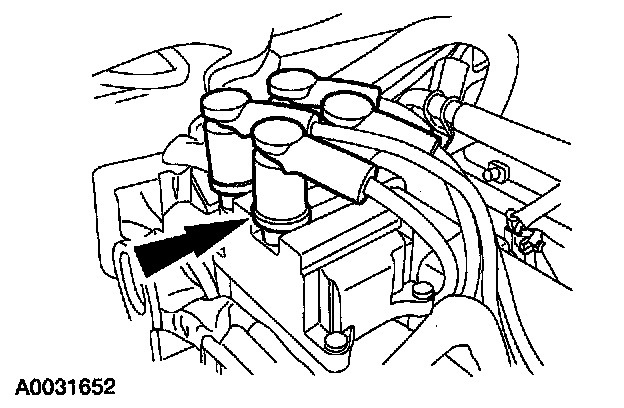 IGNITION COIL PACK REMOVAL/INSTALLATIONCAUTION: Do not pull on the spark plug wire as it may separate from the spark plug wire connector inside the spark plug wire boot.