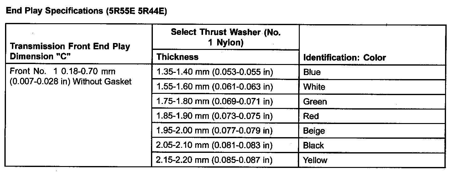 End Play Specifications (5R55E 5R44E) (Part 2):