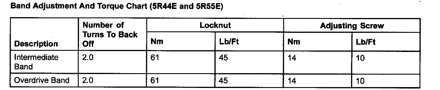 Band Adjustment And Torque Chart (5R44E and 5R55E):