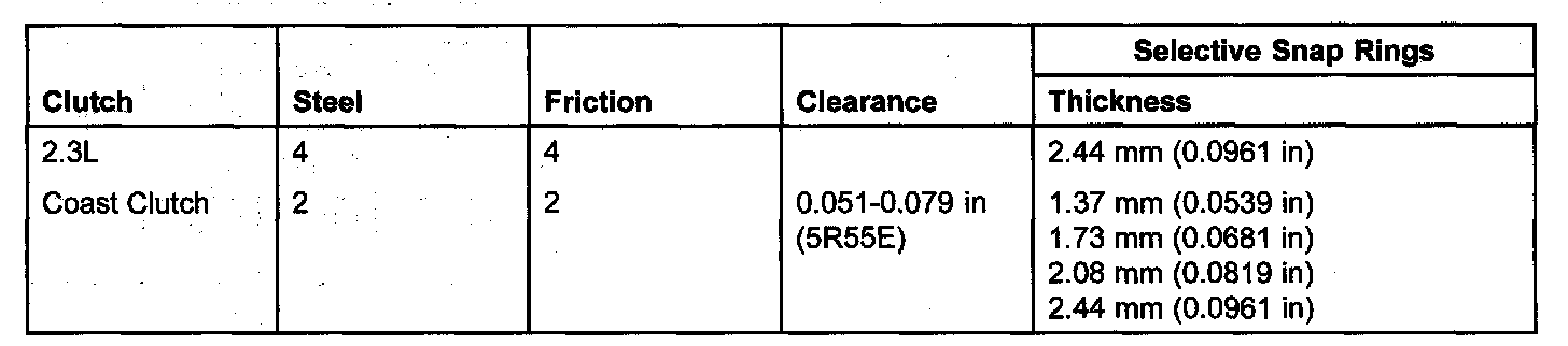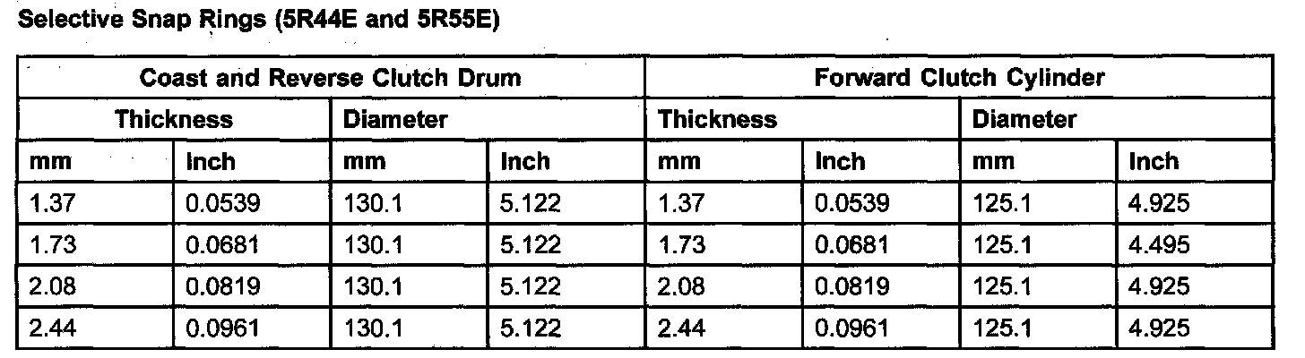Clutch Plate Usage And Clearance Specifications (5R44E and 5R55E) Part 2):