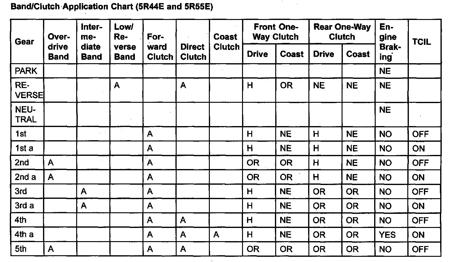 Band/Clutch Application Chart (5R44E and 5R55E)