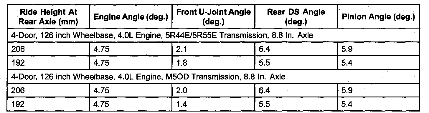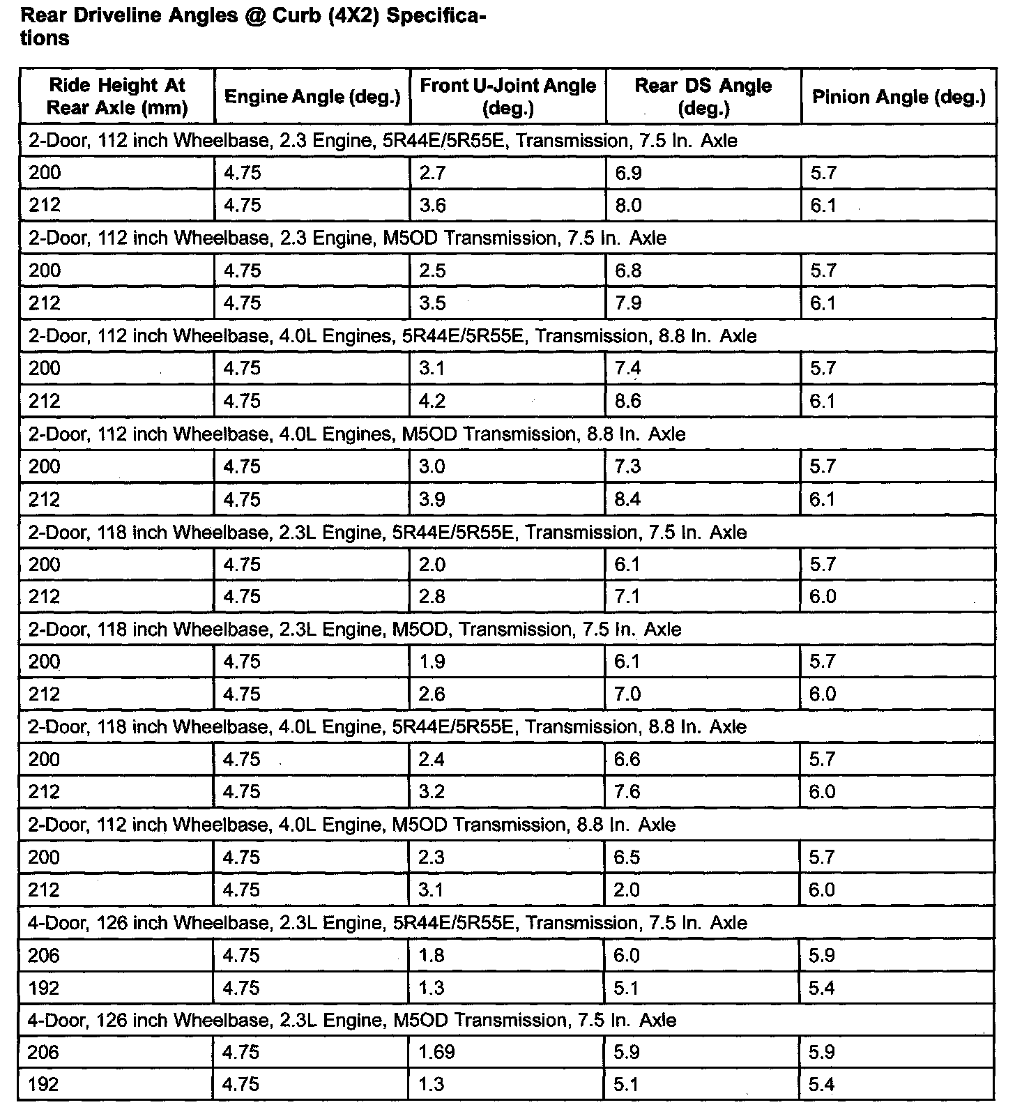 Rear Driveline Angles @ Curb (4X2) Specifications (Part 1):