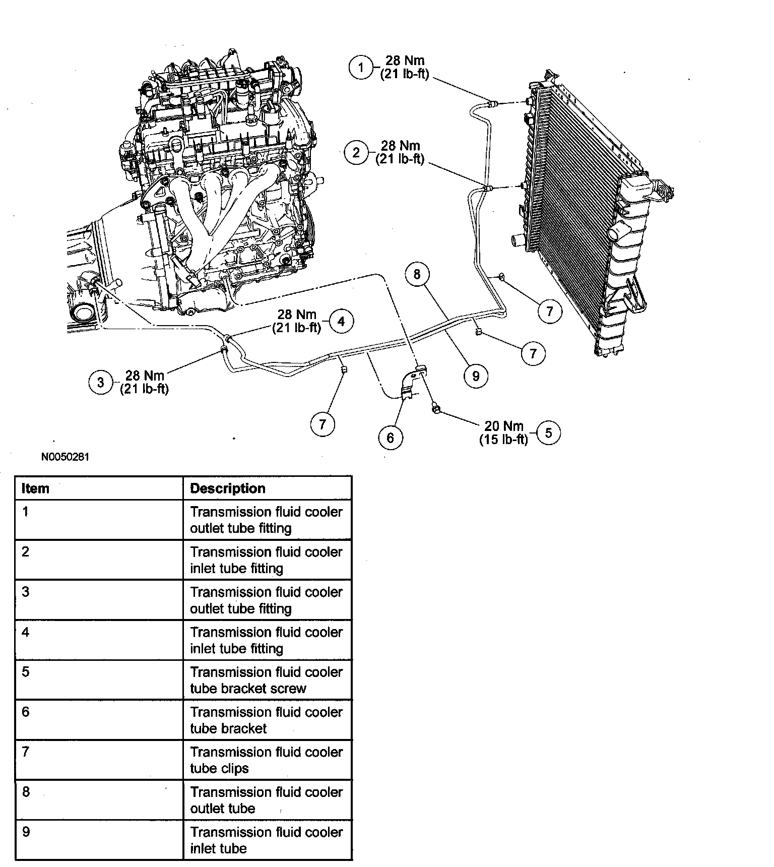 2. Connect the transmission fluid cooler inlet and outlet tubes to the transmission.