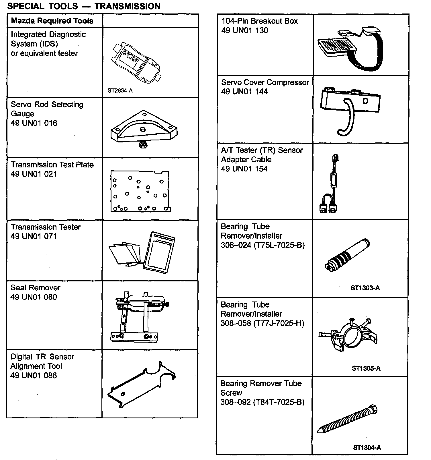 SPECIAL TOOLS - TRANSMISSION