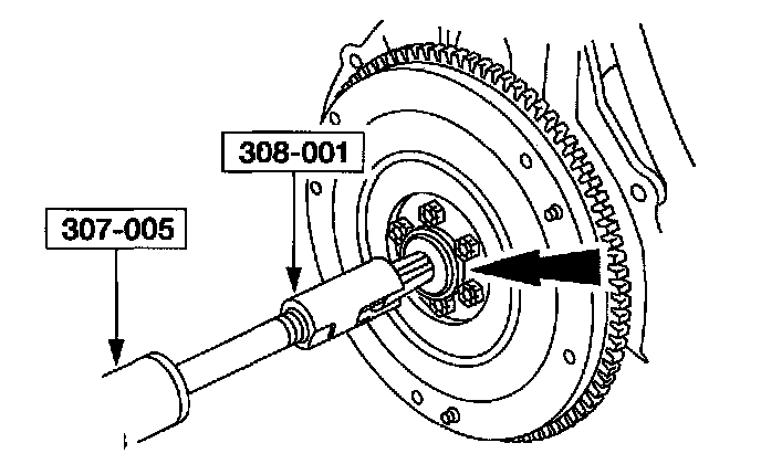 5. Using a soft-face hammer and the pilot bearing installer SST (308-105) or equivalent install the new transmission input shaft pilot bearing into the crankshaft.