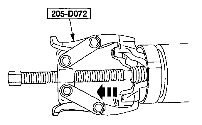 7. Using the 2 jaw puller SST, remove the pinion flange.